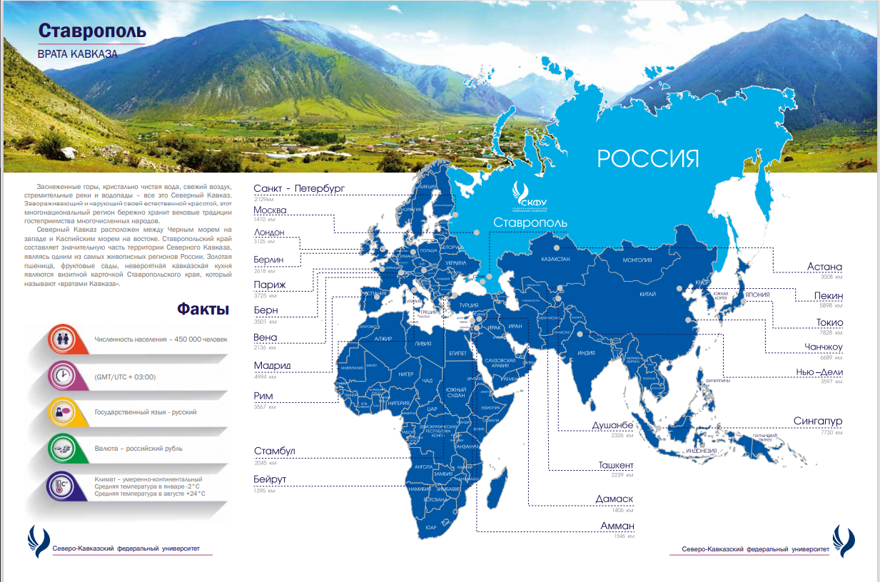 СКФУ – это динамично развивающийся уникальный научно-образовательный и инновационный центр Северо-Кавказского федерального округа, обеспечивающий подготовку квалифицированных кадров по приоритетным направлениям социально-экономического развития округа, ведущая экспертная площадка межкультурного диалога в полиэтничном регионе и ближнем зарубежье, работающий на принципах единства научных, образовательных, экономических и социальных процессов, служащий укреплению российского государства и общества, входящий в число лидирующих российских университетов.
